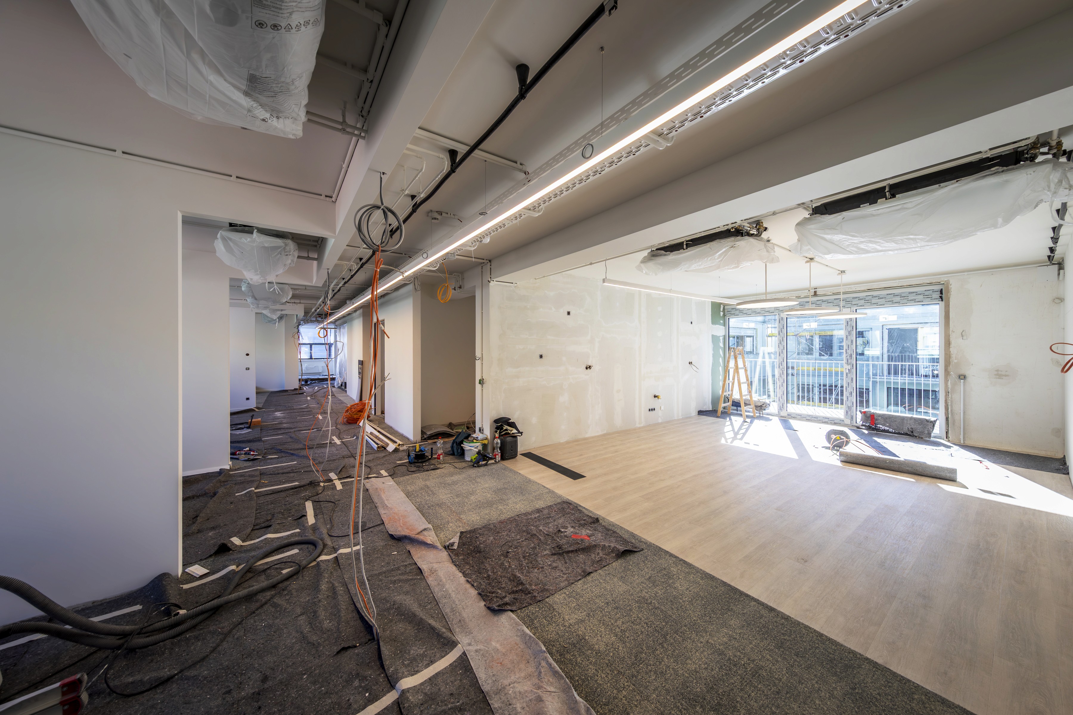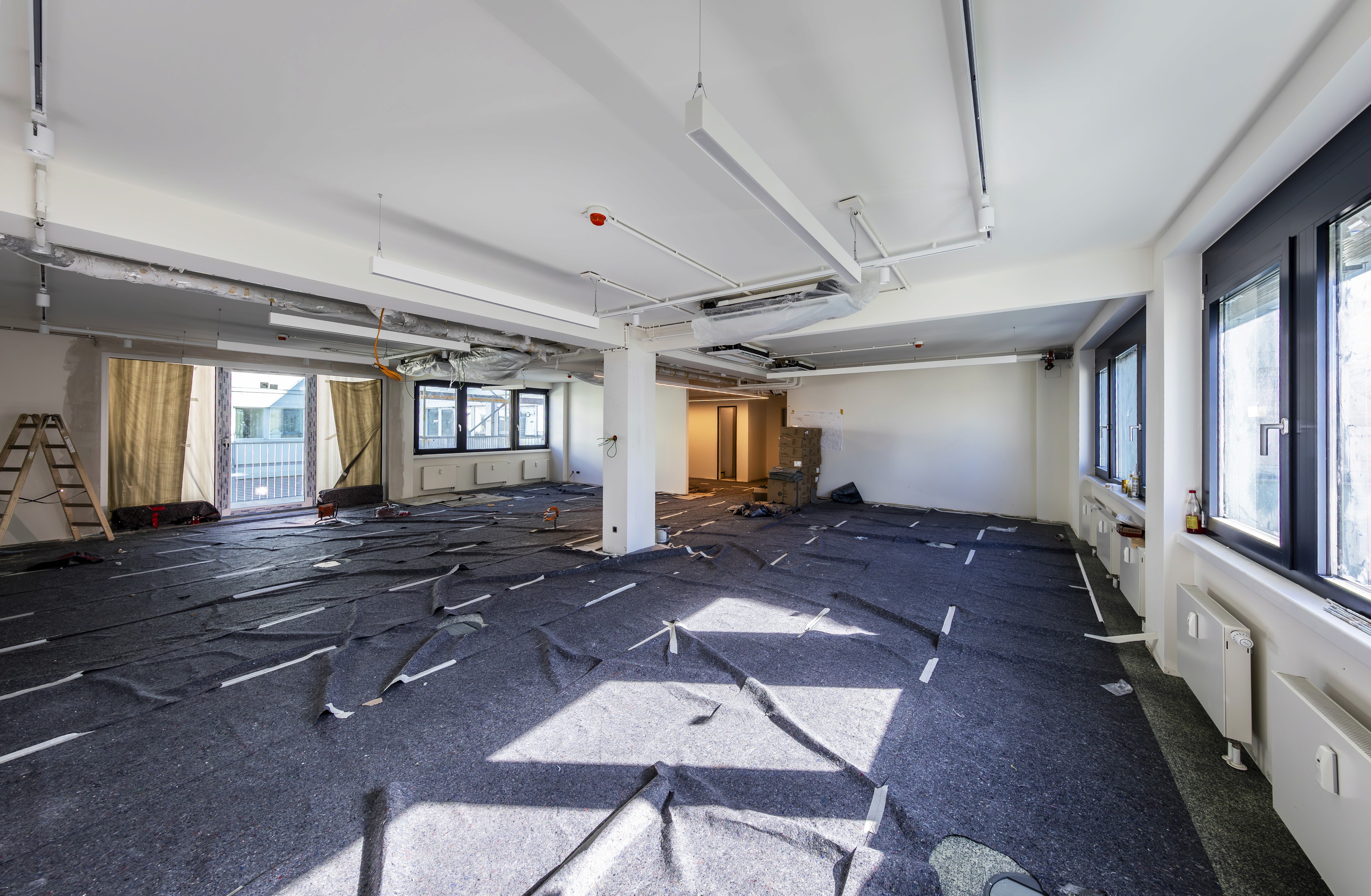 In der Markgrafen Straße haben wir für unseren Auftraggeber bestehende Büroflächen umfassend saniert und durch anspruchsvolle Rohbauarbeiten im Bestand erweitert. Im Zuge der Maßnahmen entstanden hochwertige Arbeitsbereiche, die durch ausgewählte Materialien und moderne Raumstrukturen überzeugen. Besonders hervorzuheben sind die fachgerechte Herstellung von Deckendurchbrüchen EG-1.OG sowie der Einbau aufwendiger, ortbetonierter Treppenanlagen, die höchste Präzision und Sicherheitsstandards erforderten. Ergänzend wurden exklusive Glastrennwände integriert, die eine offene, lichtdurchflutete Atmosphäre schaffen und zugleich akustische wie funktionale Anforderungen erfüllen. Das Ergebnis ist ein repräsentatives und technisch anspruchsvolles Büroumfeld auf erstklassigem Qualitätsniveau.